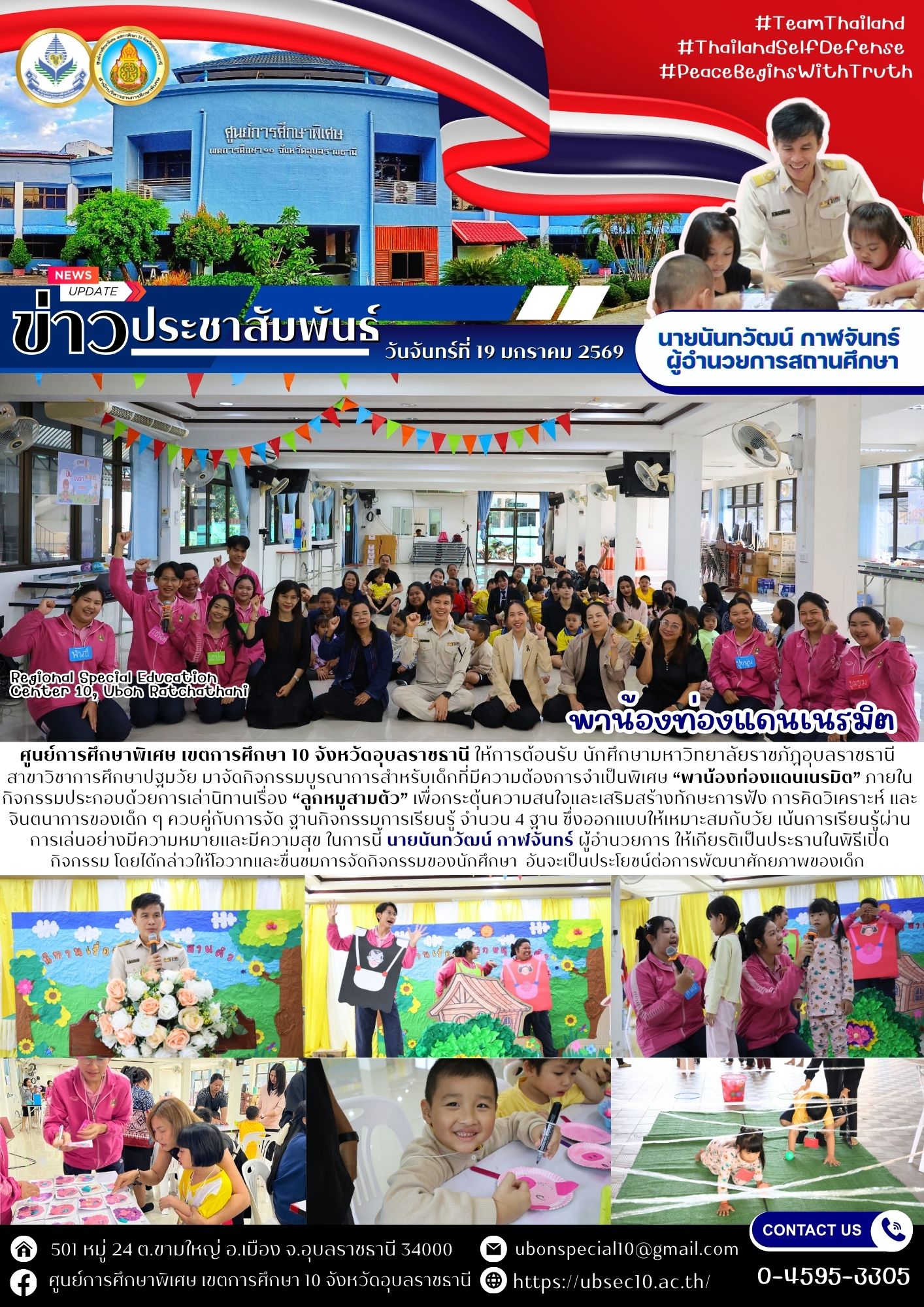 ให้การต้อนรับ นักศึกษามหาวิทยาลัยราชภัฏอุบลราชธานี สาขาวิชาการศึกษาปฐมวัย มาจัดกิจกรรมบูรณาการสำหรับเด็กที่มีความต้องการจำเป็นพิเศษ “พาน้องท่องแดนเนรมิต”By ชนินทร์ ศรีส่อง / 19 มกราคม 2026