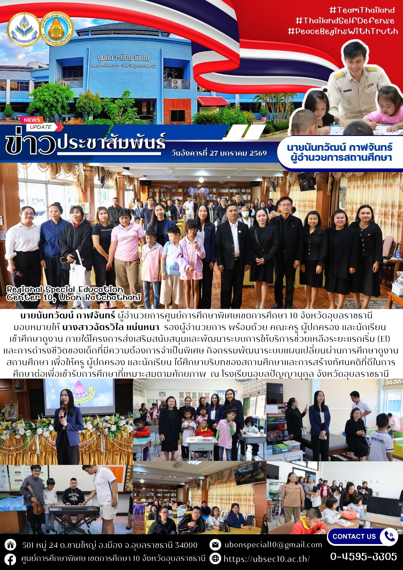 เข้าศึกษาดูงาน ภายใต้โครงการส่งเสริมสนับสนุนและพัฒนาระบบการให้บริการช่วยเหลือระยะแรกเริ่ม (El) และการดำรงชีวิตของเด็กที่มีความต้องการจำเป็นพิเศษBy ชนินทร์ ศรีส่อง / 27 มกราคม 2026