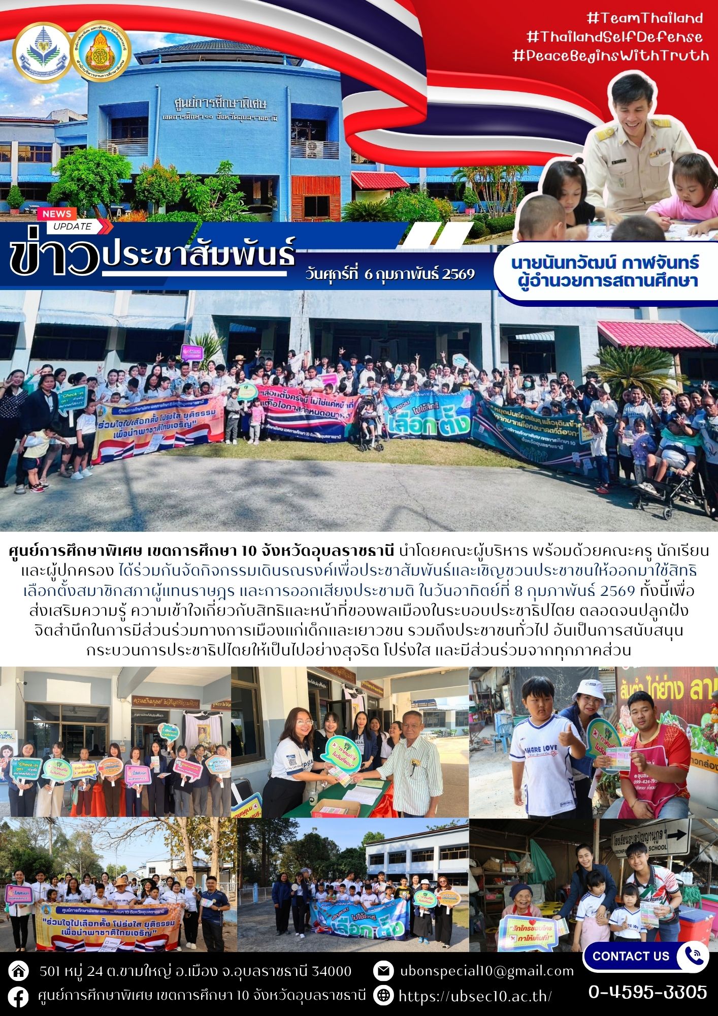 กิจกรรมเดินรณรงค์เพื่อประชาสัมพันธ์และเชิญชวนประชาชนให้ออกมาใช้สิทธิเลือกตั้งสมาชิกสภาผู้แทนราษฎร และการออกเสียงประชามติBy ชนินทร์ ศรีส่อง / 6 กุมภาพันธ์ 2026
