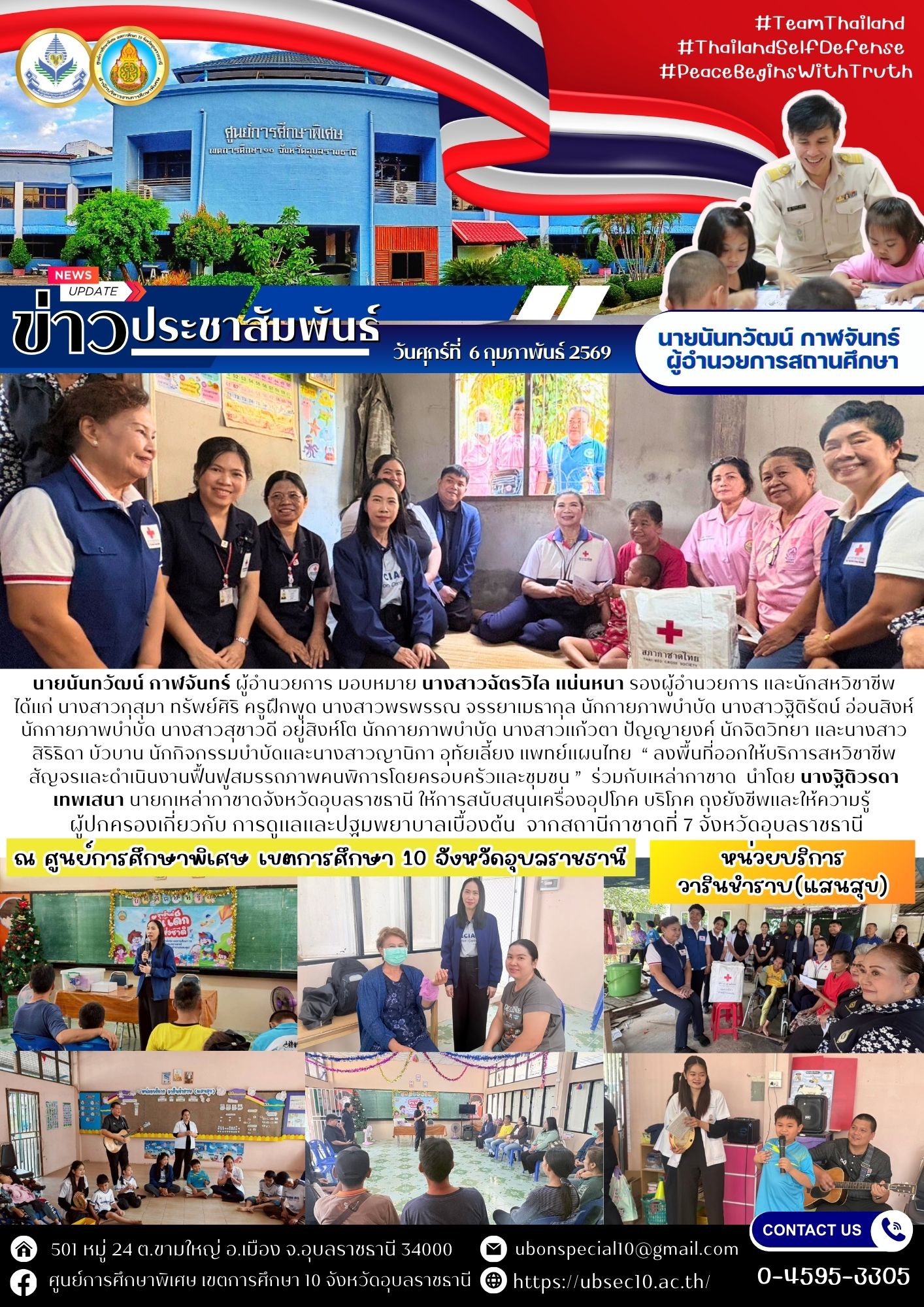 “ลงพื้นที่ออกให้บริการสหวิชาชีพสัญจรและดำเนินงานฟื้นฟูสมรรถภาพคนพิการโดยครอบครัวและชุมชน” ร่วมกับเหล่ากาชาดBy ชนินทร์ ศรีส่อง / 6 กุมภาพันธ์ 2026
