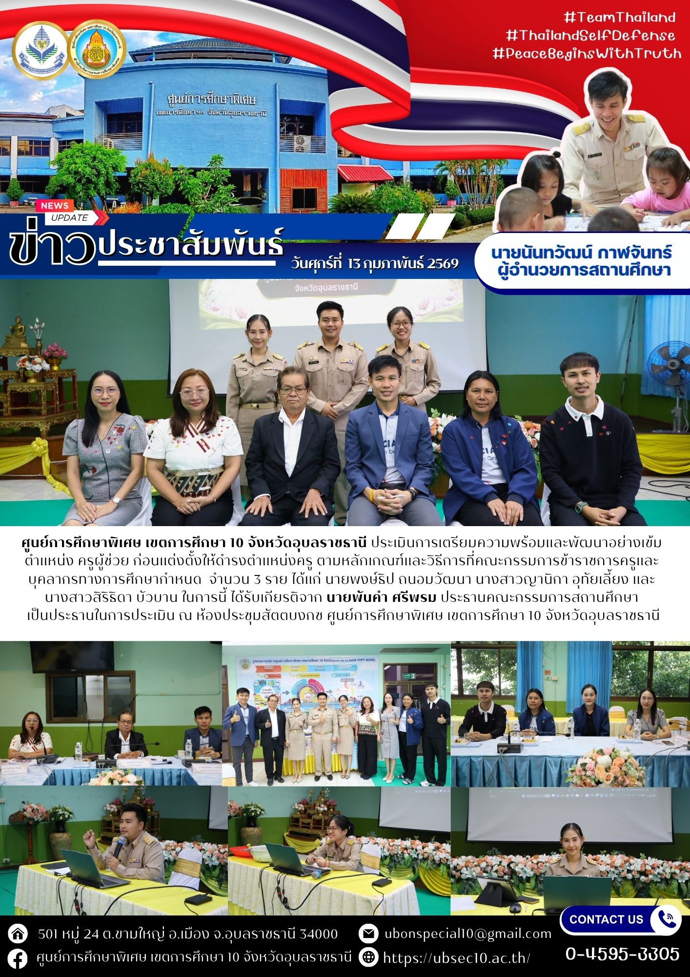 ประเมินการเตรียมความพร้อมและพัฒนาอย่างเข้ม ตำแหน่ง ครูผู้ช่วย ก่อนแต่งตั้งให้ดำรงตำแหน่งครู ตามหลักเกณฑ์และวิธีการที่คณะกรรมการข้าราชการครูและบุคลากรทางการศึกษากำหนด จำนวน 3 รายBy ชนินทร์ ศรีส่อง / 13 กุมภาพันธ์ 2026