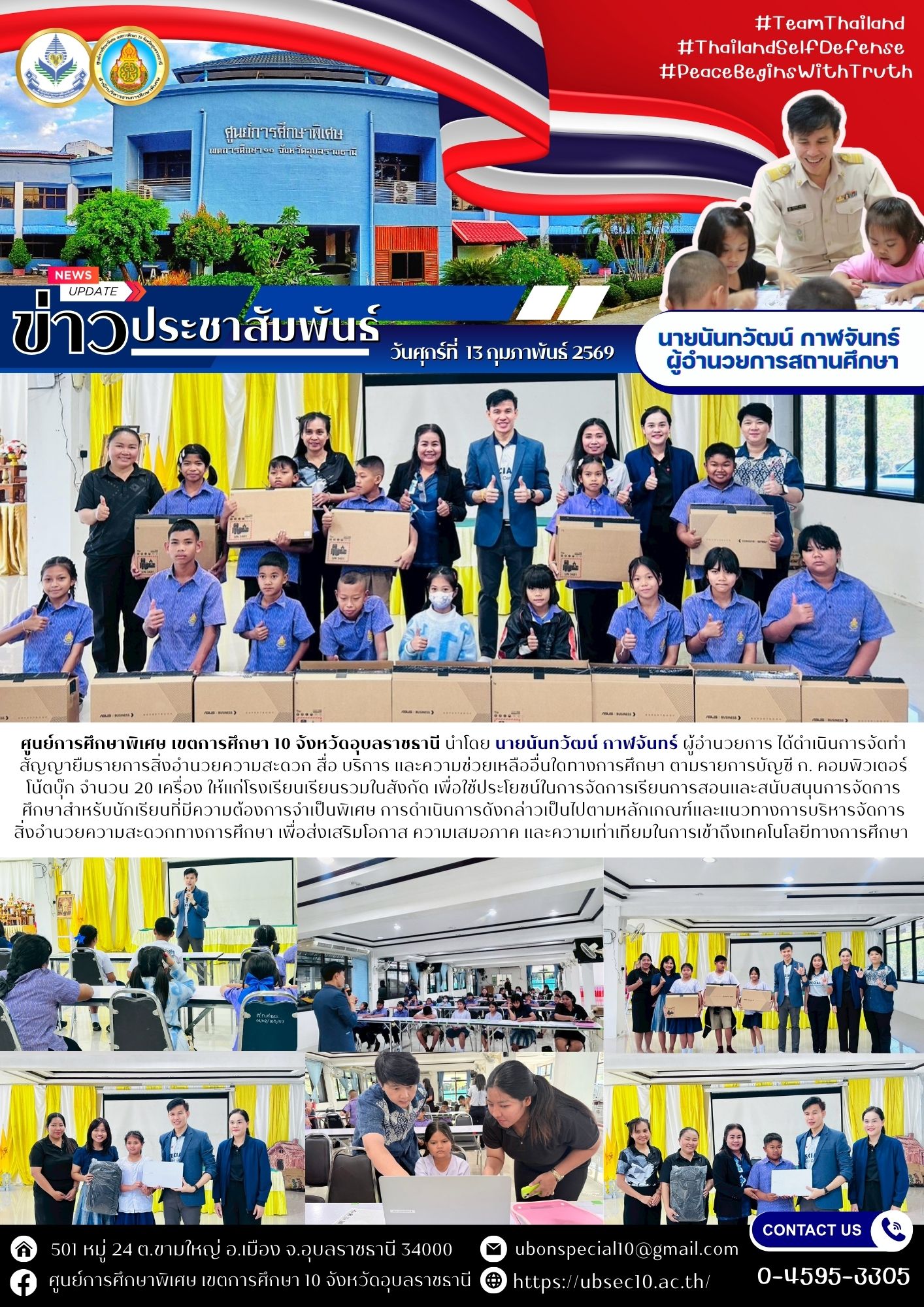 ดำเนินการจัดทำสัญญายืมรายการสิ่งอำนวยความสะดวก สื่อ บริการ และความช่วยเหลืออื่นใดทางการศึกษา ตามรายการบัญชี ก. คอมพิวเตอร์โน้ตบุ๊ก จำนวน 20 เครื่อง ให้แก่โรงเรียนเรียนรวมในสังกัดBy ชนินทร์ ศรีส่อง / 13 กุมภาพันธ์ 2026