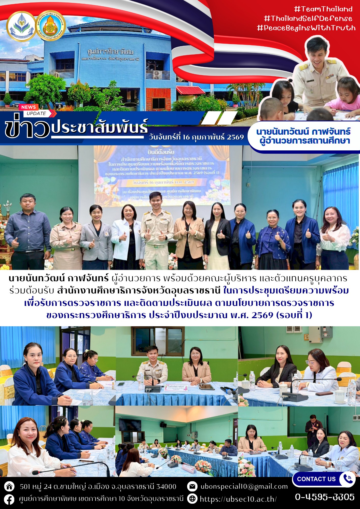 ประชุมเตรียมความพร้อมเพื่อรับการตรวจราชการ และติดตามประเมินผล ตามนโยบายการตรวจราชการ ของกระทรวงศึกษาธิการ ประจำปีงบประมาณ พ.ศ. 2569 (รอบที่ 1)By ชนินทร์ ศรีส่อง / 16 กุมภาพันธ์ 2026