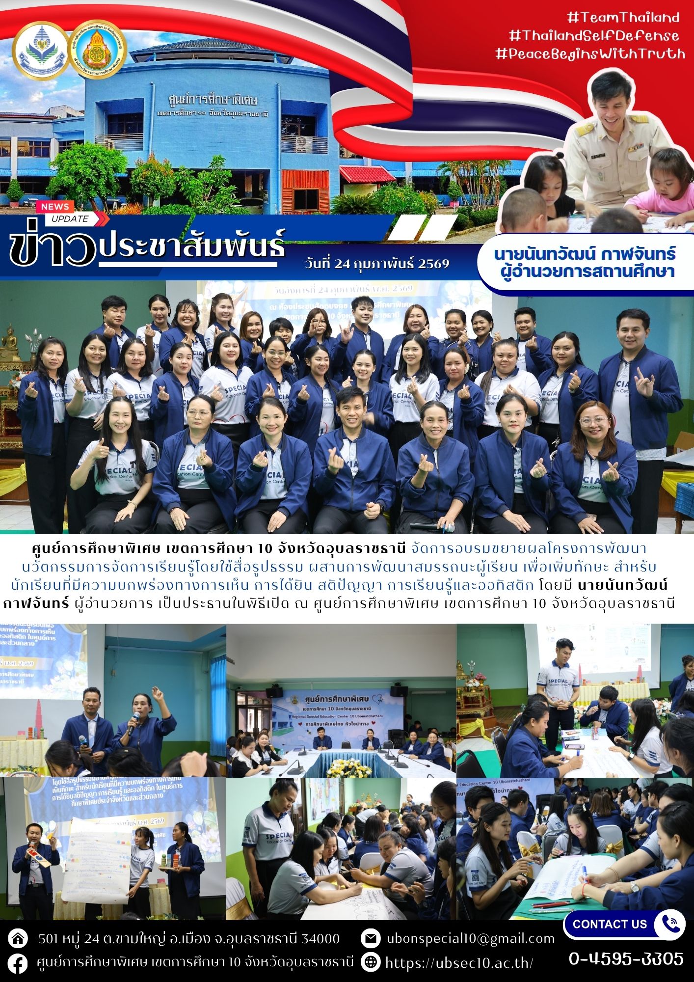 อบรมขยายผลโครงการพัฒนานวัตกรรมการจัดการเรียนรู้โดยใช้สื่อรูปธรรม ผสานการพัฒนาสมรรถนะผู้เรียน เพื่อเพิ่มทักษะ สำหรับนักเรียนที่มีความบกพร่องทางการเห็น การได้ยิน สติปัญญา การเรียนรู้และออทิสติกBy ชนินทร์ ศรีส่อง / 24 กุมภาพันธ์ 2026